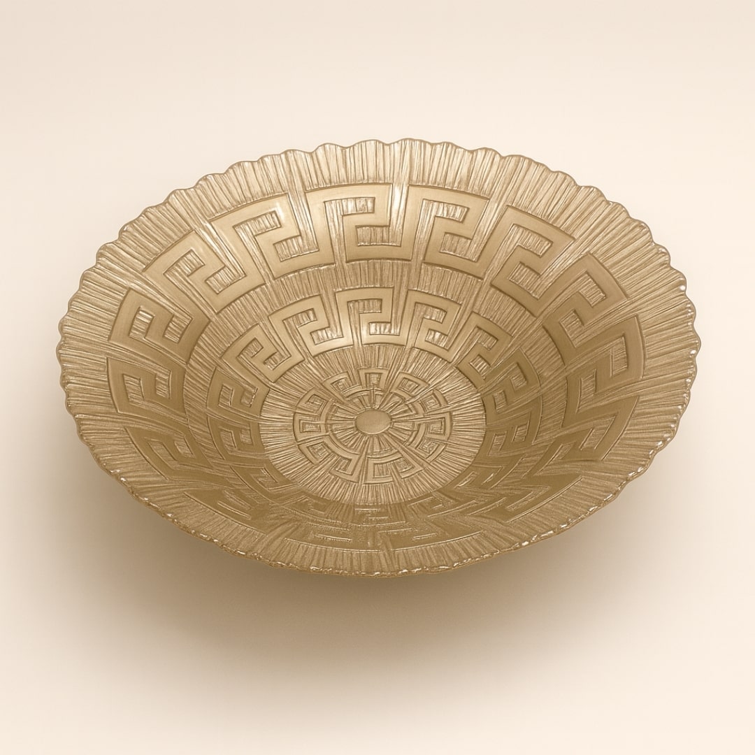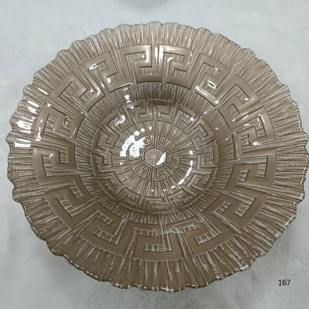 Unesite dozu elegancije u svoj dom ovom predivnom dekorativnom zdjelom širokog i plitkog oblika. Izrađena od kvalitetnog stakla sa posebnim geometrijskim reljefnim uzorkom, ova zdjela je idealna kao centralni dekor na stolu, komodi ili vitrinama.