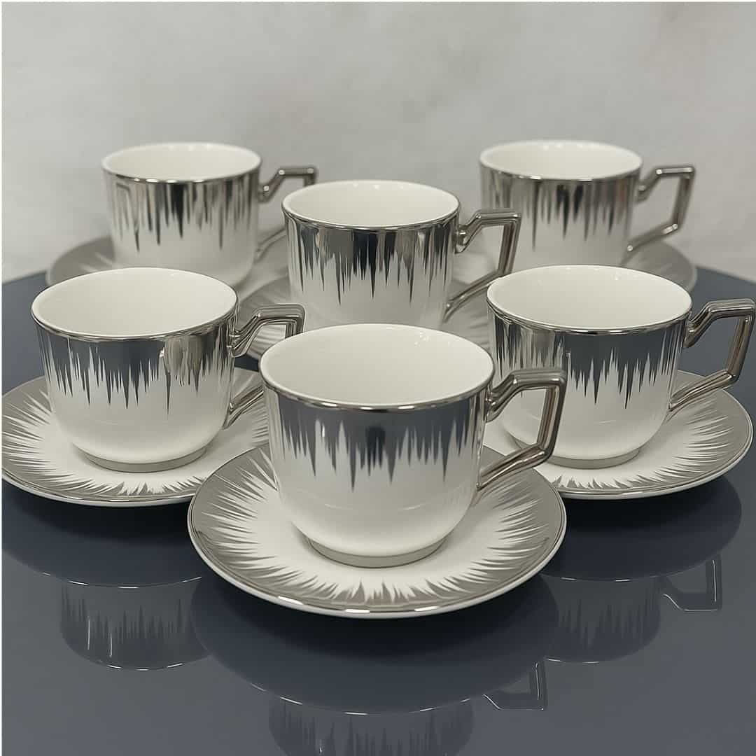 Set od 6 elegantnih srebreno-bijelih šoljica