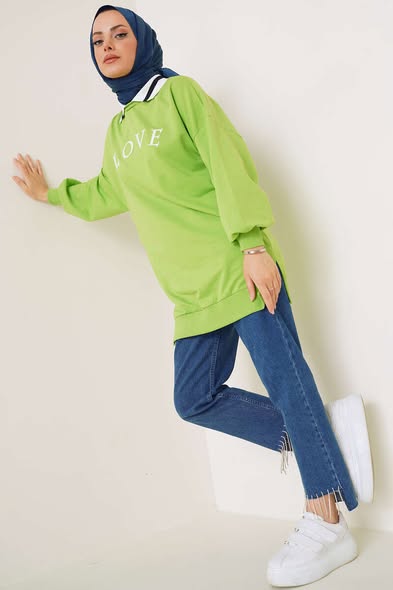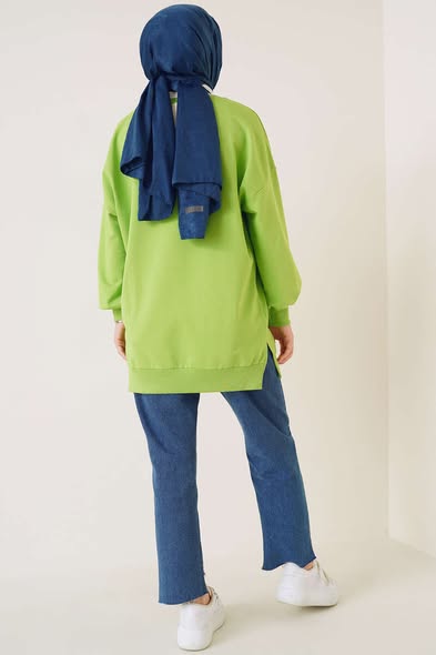 Model je širokog i ležernog kroja, što omogućava maksimalnu udobnost tokom cijelog dana. Zahvaljujući svojoj dužini i kroju, tunika se lako kombinuje uz farmerke, trenerke ili ravne pantalone, za opušten, ali uređen izgled.